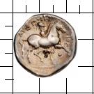 ΑVΔΩΛΕΟΝ-ΤΟΣ. Stilisierter Reiter mit Helm auf n. r. trabendem Pferd; eine Kugel zwischen den Vorderläufen des Pferdes.