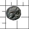 Kopf des Apollon n. l., lorbeerbekränzt.