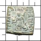 maharajasa tratarasa hipustratasa [Legende in Kharosthi]. Weibliche Figur mit Krone steht n. l., streckt die r. Hand vor, hält in dem l. Arm einen Palmzweig, i. F. links ein Monogramm aus A und T, i. F. rechts ein Kharosthi-Buchstabe. |