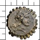 Kopf des Apollon n. r., lorbeerbekränzt. |