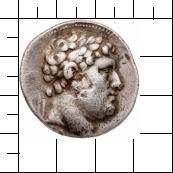 Kopf des Philetairos n. r. mit Blattkranz, im Nacken hängen Bindenenden glatt herab. |