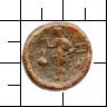 ΣH [retrograd]. Hermes steht frontal, den Blick n. l. gewandt, in der r. Hand das Kerykeion, links i. F. Gefäß. |