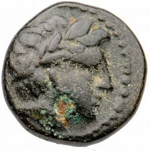 Vorderseite: Kopf des Apollon n. r., lorbeerbekränzt.