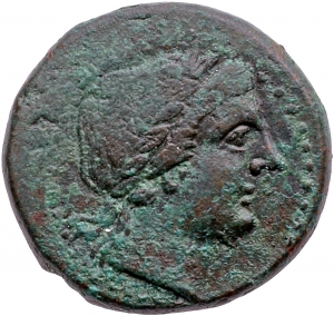Vorderseite: Kopf des Apollon n. r. , lorbeerbekränzt.