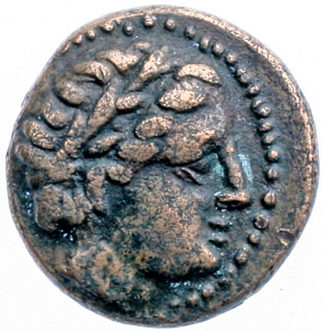 Vorderseite: Kopf des Apollon n. r., lorbeerbekränzt.