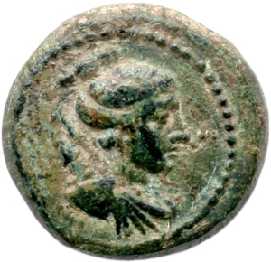 Obverse: Gewandbüste der Artemis n. r., hinter der l. Schulter Köcher und Bogen; Perlkreis.