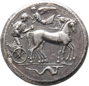 Literatur: E. Boehringer, Die Münzen von Syrakus (Berlin 1929) 194-196 Nr. 434-448 (Reihe XIIIb; 474-450 v. Chr.); O. Hoover, Handbook of Coins of Sicily (including Lipara), HGC 2 (2012) 352 Nr. 1310 (ca. 460-450 v. Chr.).