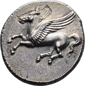 Vorderseite: Pegasos fliegt n. l.