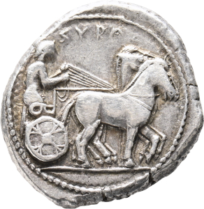 Literatur: O. Hoover, Handbook of Coins of Sicily (including Lipara), HGC 2 (2012) 351 Nr. 1302 ("geprägt unter den Gamoroi und der Ersten Demokratie, ca. 490-485 v. Chr.); E. Boehringer, Die Münzen von Syrakus (Berlin 1929) 116 Nr. 31 (Taf. 2; V 22 / R 15, Reihe II; 510-485 v. Chr.).