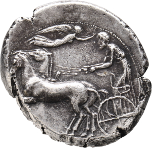 Literatur: E. Boehringer, Die Münzen von Syrakus (Berlin 1929) 225 Nr. 604 (V 296 / R 410; Reihe XVIII; 474-450 v. Chr.); O. Hoover, Handbook of Coins of Sicily (including Lipara), HGC 2 (2012) 353 Nr. 1315 (ca. 440-430 v. Chr.).