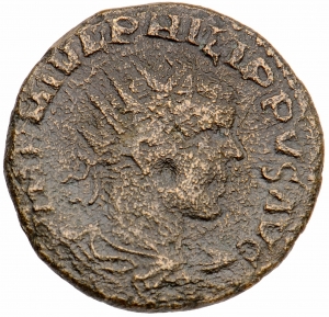 Vorderseite: IMP M IVL PHILIPPVS AVG. Drapierte Panzerbüste des Philippus iunior n. r. mit Strahlenkrone.